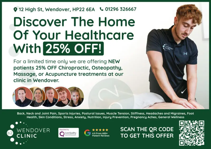 The clinic offers Chiropractic, Osteopathy, Massage or Acupuncture treatments.